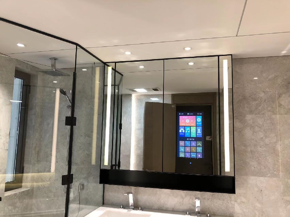 智能魔鏡魔鏡正面有雙麥MIC麥克風采音,內置AI智能語音助手。從選播音樂、看視頻、讀新聞到控制家電設備都可實現全語音控制。可聯動家中的智能設備,通過觸控或語音即可輕松控制燈光、音樂、空氣、熱水、門禁等設備。